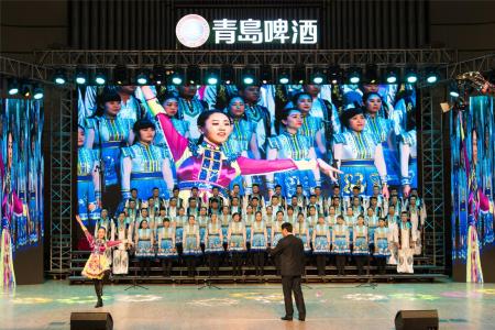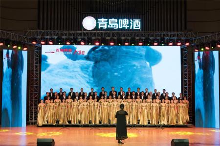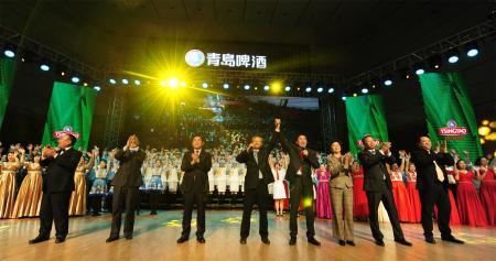 青岛啤酒公司董事长孙明波、总裁黄克兴、纪委书记李艳等领导和全体演职人员共同唱响荣誉