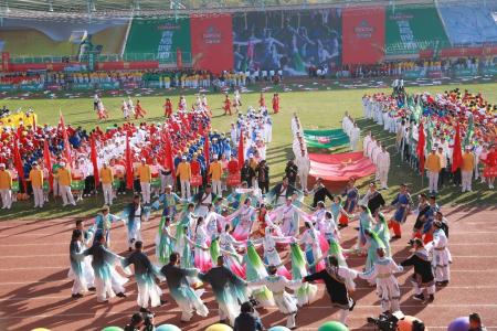 在开幕式上,青啤集团来自全国各地业务单位的职工代表组成了56个入场方阵,国旗方阵、司旗方阵、主题彩车等方阵前导通过;由青啤拉拉宝贝和新一届管培生的组成的活力方阵,以激情昂扬的舞蹈表演展现了青岛啤酒年轻、时尚、活力的崭新形象。