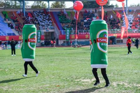 入场式结束之后,600名青啤员工涌上绿茵场,手舞彩旗,用整齐划一的动作、变化有序的队形,展示出了新时代青啤人的奋发向上、锐意进取。作为2008年北京奥运会和北京2022年冬奥会官方赞助商,青岛啤酒把啤酒和体育的激情完美结合,以中国品牌的责任与担当,展现奥运的精彩和荣光。奥林匹克精神不仅是体育精神,更是追寻超越自我的奋斗精神。青岛啤酒将这种奋斗精神融入公司发展的伟业中,用中国品牌与世界干杯!