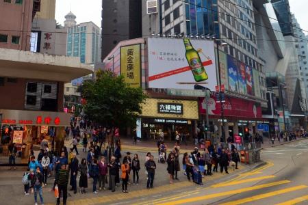 香港赛马场的青岛啤酒摊位前人流如织