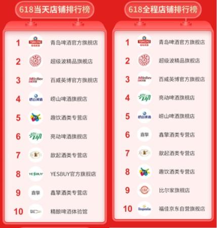 在2019年京东618啤酒类店铺TOP10排行榜中,青岛啤酒官方旗舰店一炮双响,位列“618当天店铺排行榜”第一、“618全程店铺排行榜”第一,创造了自2014年开店以来最佳战绩,在京东平台年中大促中勇夺冠军。