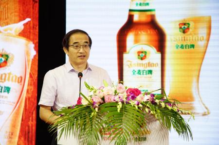8月11日,主题为“精酿新时代 斟享心生活” 的青岛啤酒全麦白啤战略发布会在山东青岛举行,青岛啤酒正式发布全麦白啤发展战略——持续打造中国白啤品类第一品牌。中国酒业协会常务副秘书长兼啤酒分会秘书长何勇,青岛啤酒股份有限公司总裁兼制造总裁、总酿酒师樊伟,营销总裁蔡志伟,制造副总裁董建军以及来自各行各业的大咖、白啤忠实粉丝一同出席了会议。