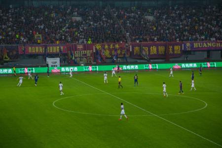 本场比赛,青岛主场的球票创纪录的全部售光,球迷们像潮水一样涌向国信体育场,现场上万名球迷,在比赛中也玩起的欢乐人浪煞是壮观,而在国信体育场16号看台,青岛啤酒球迷专属看台,这里的球迷也因为“足球+啤酒”的感染而最为热情。