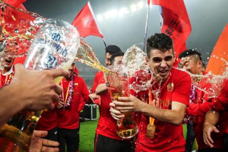 其他的球员被主教练佩雷拉的情绪所点燃,像庆祝进球一样举着啤酒杯挥舞,为这个赛季努力拼搏所赢来的荣誉欢呼雀跃。上海八万人体育场变身欢乐的海洋,啤酒四处喷涌,礼花飞扬飘散,欢乐的氛围到处扩散。