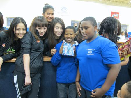 拥有灿烂质朴笑容的中国第一啦啦宝贝李春汶一向富有亲和力,到了海外后这份感染力也丝毫不减,美国的小朋友们都喜欢围着这位黑发飘飘的美丽姐姐学习写中国、北京、青岛,画长城,李春汶说:我真的非常喜欢这些孩子,当我看到他们脸上洋溢着灿烂的笑容时,我非常欣慰,但愿我们能把更多的快乐和希望传递给他们,但愿我们的礼物能带她们度过一个幸福的圣诞节。临近尾声,双方交换了各自精心准备的礼物,并合影留念,慈善互动在中国啦啦宝贝们再一次带来的“中国风”啦啦舞展示中拉上帷幕。