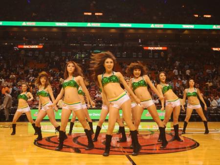现场球迷还享受到了一场意料之外的惊喜——青岛啤酒“炫舞激情”NBA啦啦队选拔赛全国十强在本场比赛中登台表演,中国宝贝们的超凡演绎,给亿万人聚焦的现场带来了别具特色的饕餮盛宴。当啦啦宝贝身着盛装惊艳亮相时,美航球馆内的气氛被再度被点燃,青岛啤酒的啦啦宝贝宝贝与“三巨头”共同上演一幕“迈阿密风云”。