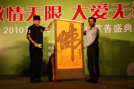 伴随此起彼伏的竞拍声,青岛啤酒新百年的第一桶酒、青啤公司金志国董事长书法、姚明签名篮球、卡卡球衣、赵本山字画、NBA球星奥尼尔、詹姆斯签名球衣、巴萨梅西签名球衣、穆托姆博签名球鞋、21位羽毛球超级联赛冠军球员签名球衣、石广生字画等众多爱心拍品被一一成功竞拍,竞拍金额连同现场捐款合计超过千万元。这是发生在8月14日“激情无限 大爱无疆”2010青岛啤酒•QSL慈善盛典上的一幕。慈善盛典的举办,为同期开幕的青岛国际啤酒节这场国际盛宴、为“黄海之滨”青岛在激情、欢腾之余,平添了一抹慈爱辉泽。