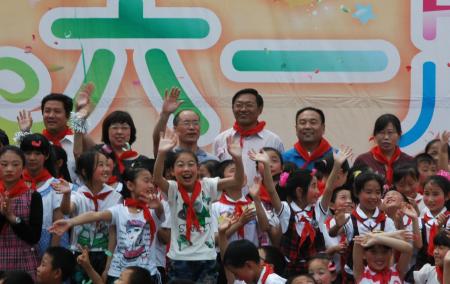 50个川娃子快乐领奖学金??青岛啤酒再度赴川陪灾区孩子过六一
