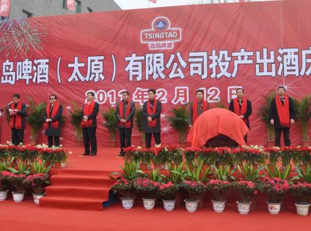 山西省委常委、太原市委书记陈川平,市委副书记、市长张兵生,青啤公司党委书记、副董事长王帆共同开启了青啤太原公司生产的第一桶啤酒。这标志着备受市民关注的青啤太原公司,在引进青啤国际化酿造技术与标准,进行系统改造后,正式投产,从此山西人民在家门口就能喝上优质、正宗、新鲜的青岛啤酒。仪式上,太原市委常委、副市长荣彤,青啤公司副总裁樊伟先后致辞。太原市、经济开发区及小店区有关部门的领导,青啤太原公司员工,施工单位及经销商、供应商、消费者代表近600人参加了庆典仪式。
