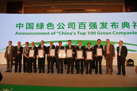 2011中国绿色公司百强发布典礼现场,青啤公司生产管理总部部长卢绪军(右三)代表公司领奖